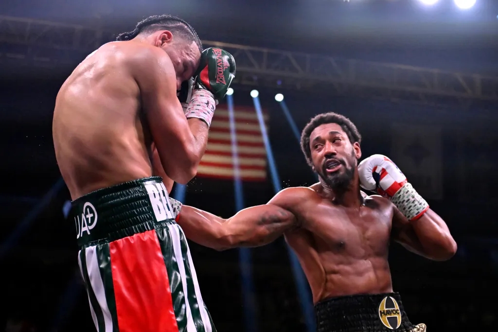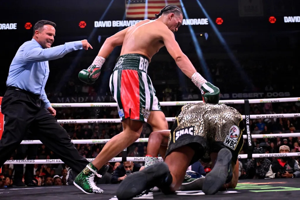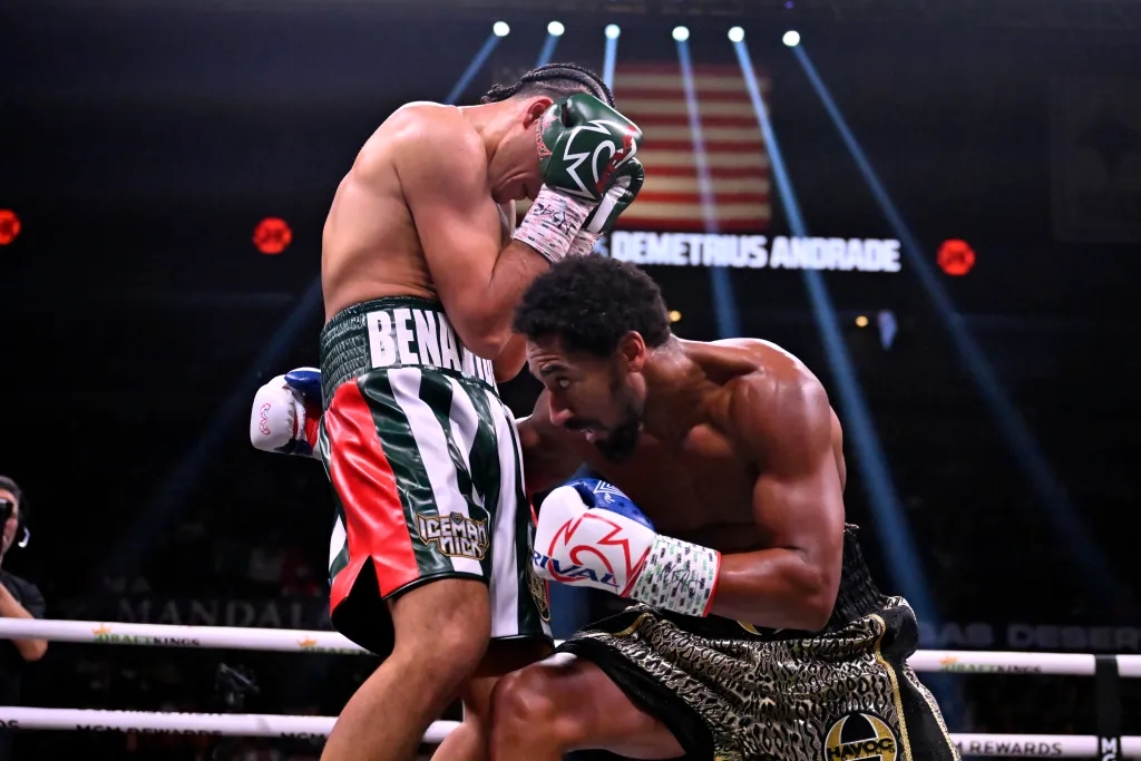 北京时间11月26日,在美国拉斯维加斯举行的Showtime拳击最后一期比赛上,26岁的WBC超中量级临时冠军大卫·贝纳维德兹(David Benavidez)对阵35岁的前WBO中量级冠军德米特里乌斯·安德拉德(Demetrius Andrade),最终贝纳维德兹在第六回合结束后TKO获胜。
