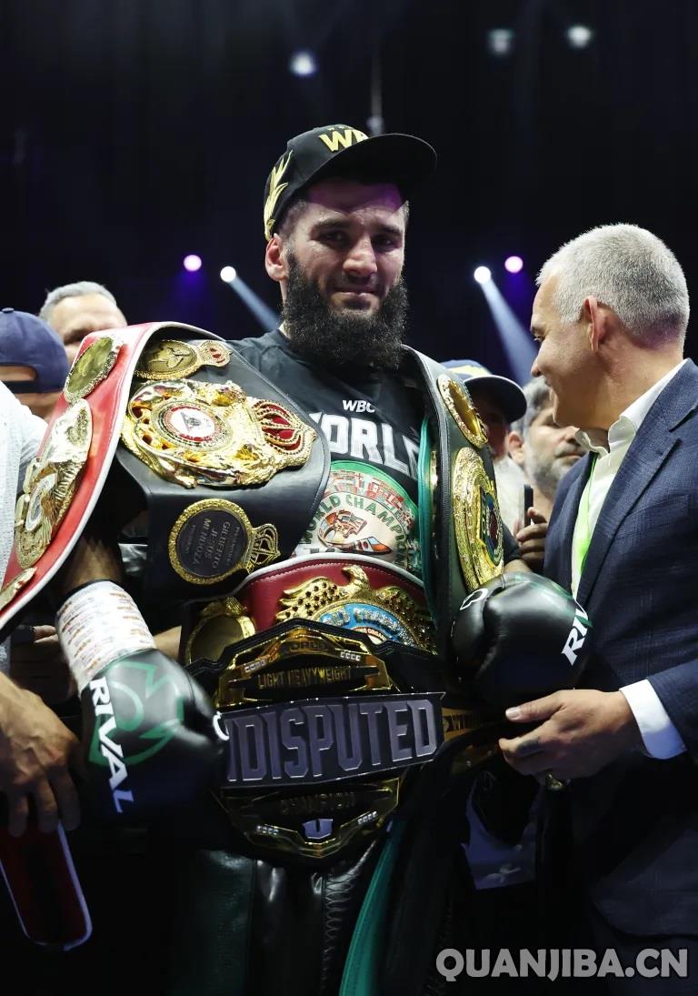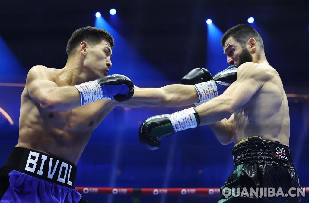 北京时间10月13日,现任WBC、IBF和WBO轻重量级世界冠军阿图尔·贝特比耶夫(Artur Beterbiev)与现任WBA轻重量级冠军俄罗斯不败拳王德米特里·比沃尔(Dmitry Bivol)的四大组织冠军统一战在沙特阿拉伯利雅得王国竞技场举行。双方打满十二回合,最终贝特比耶夫争议性的多数判定获胜一统轻重量级四大组织冠军。