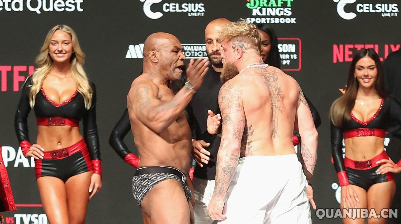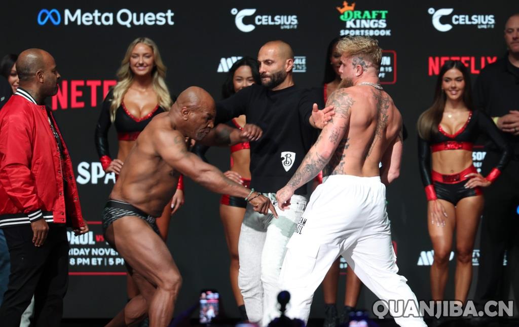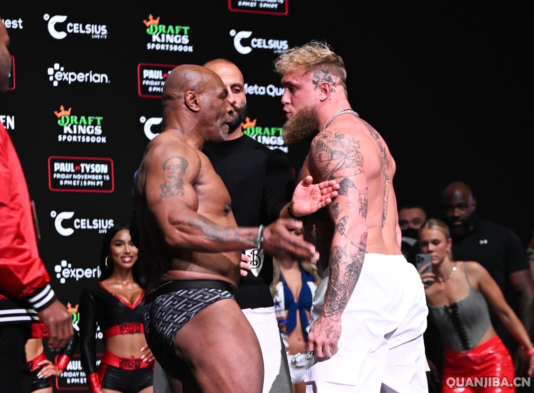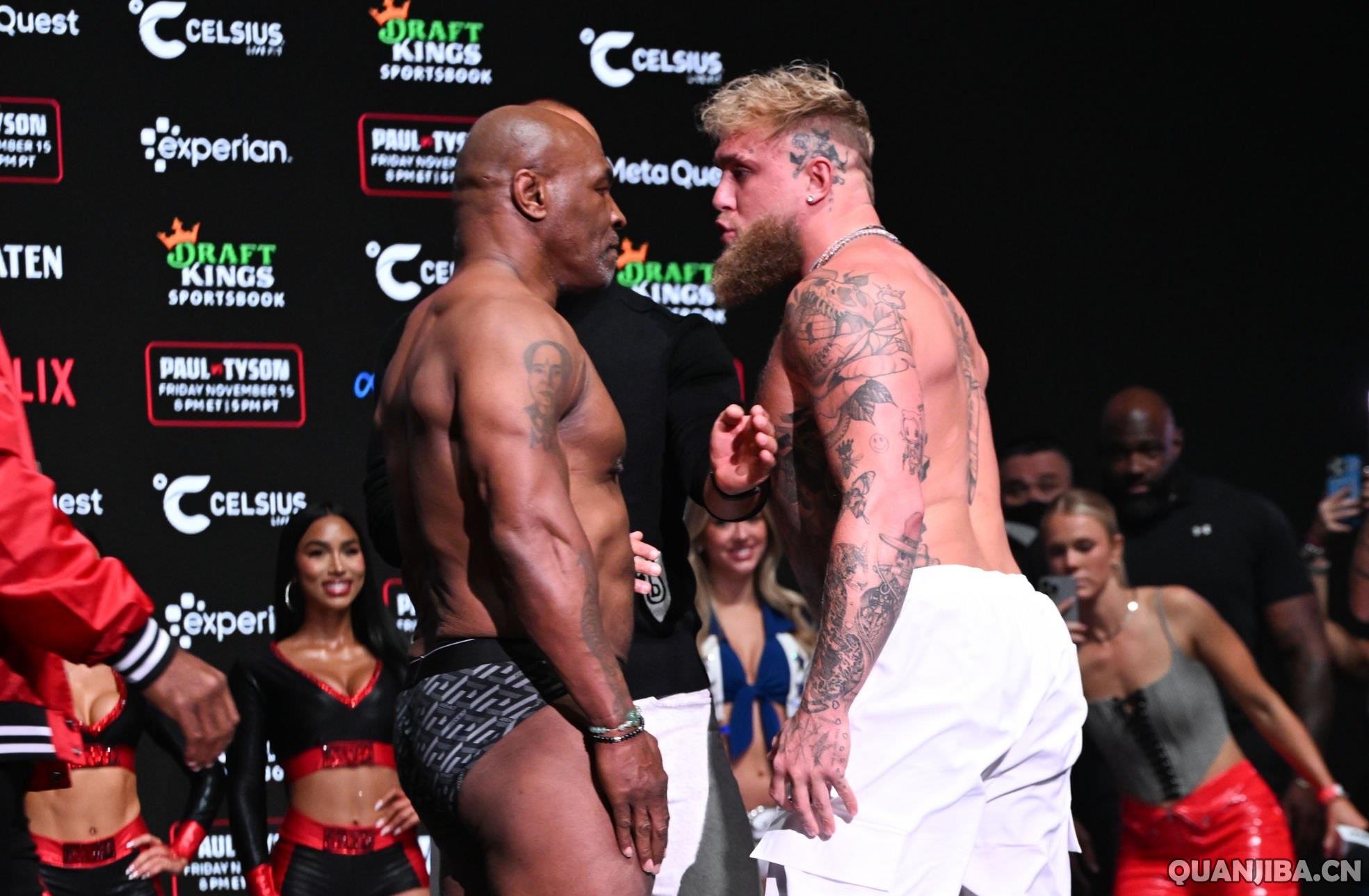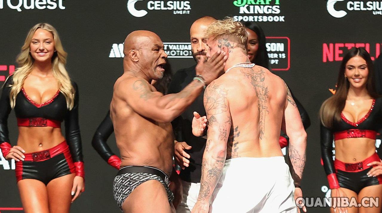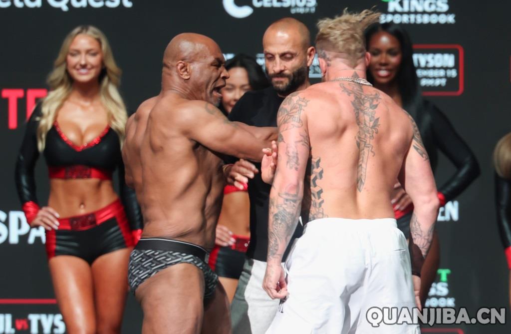 克·保罗(Jake Paul)的拳击比赛,即将于北京时间11月16日在美国阿灵顿举行。 今天的赛前称重仪式上,泰森(50-6,44 KO,2 N)体重228.4磅,保罗(10-1,7 KO)体重227.2磅。在双方对视的时候,保罗踩了泰森的脚趾,泰森瞬间暴怒大嘴巴扇了保罗,随后双方被拉开。 (明天(周六)上午8点,抖音《小北格斗》、《格斗战线》直播,敬请关注!)