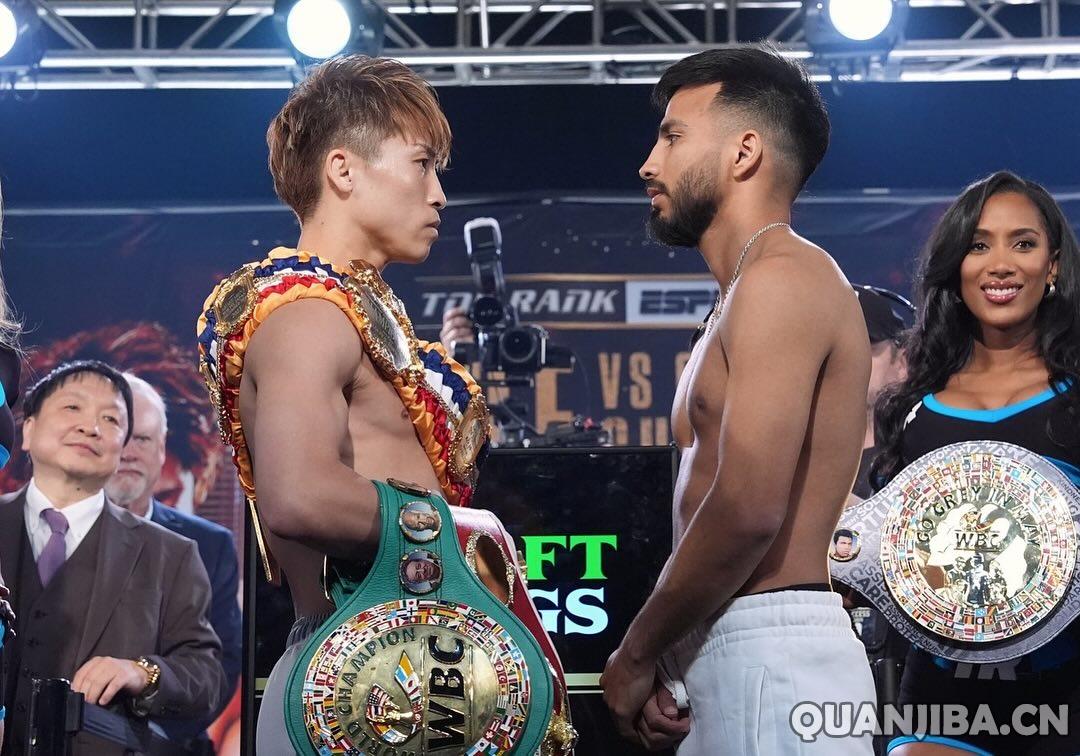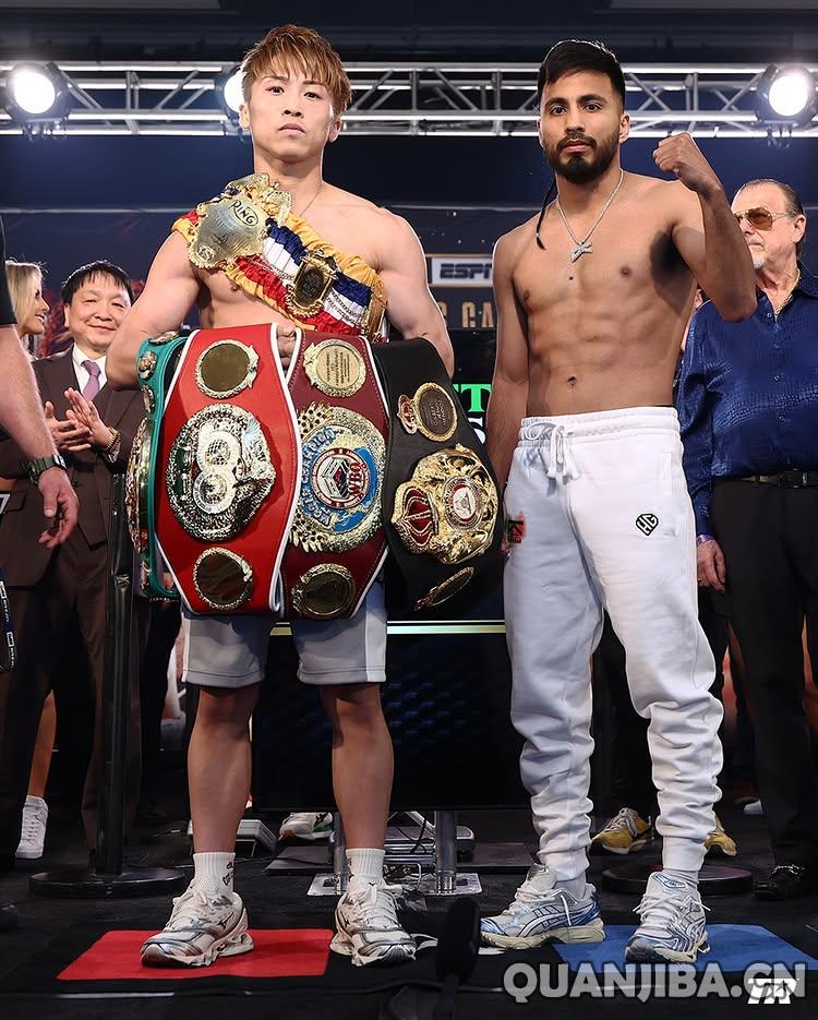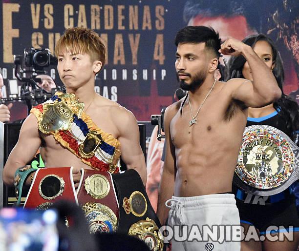 今天的赛前称重仪MMA式上双方顺利通过,井上尚弥(29-0,26 KO)体重121.9磅,拉蒙·卡德纳斯(26-1,14 KO)体重121.8磅。
