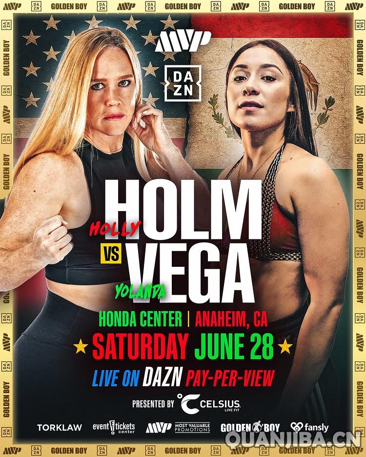 霍尔姆的拳击回归之战已经确定,她将对阵墨西哥不败女将尤兰达·瓜达卢佩·维加·奥乔亚(Yolanda Guadalupe Vega Ochoa),比赛将于北京时间6月29日在美国阿纳海姆市举行。当天的头条主赛是杰克·保罗的13场职业拳击比赛,对阵前WBC中量级世界冠军小胡里奥·塞萨尔·查韦斯(Julio Cesar Chavez Jr.)。