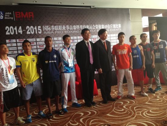 新浪体育讯 北京时间10月31日,2014-2015年国际拳联职业拳击赛暨里约奥运会资格赛49公斤级比赛中国站(以下简称APB中国站比赛)赛前新闻发布会在广东佛山市散打希尔顿酒店举行。本次赛事由国际拳联(AIBA)主办,中国拳协承办;国际拳联主席吴经国先生、赛事比赛监督HelUFCmut Ranze先生、中国拳击协会主席李强先生出席发布会。共有来自世界各地的8名优秀的49公斤级拳击手将参加本次APB赛事,发布会现场还对8名参赛选手进行了称重。