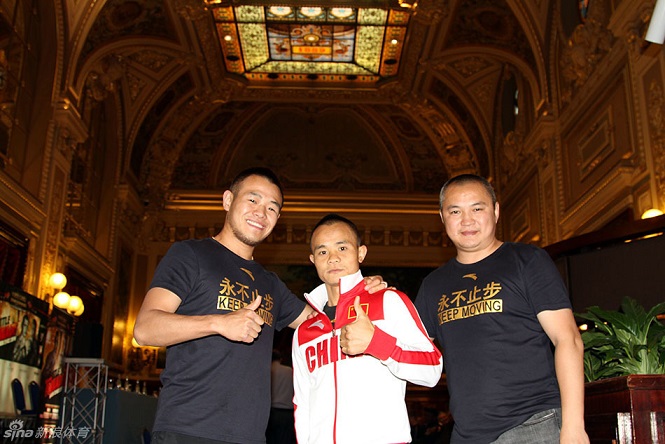 这次熊朝忠参加的世界拳王赛共有5场,场场都是顶级赛事,最低2星级,最高4星级。抵达蒙特卡洛已经3天了,熊朝忠丝毫没有受到这里时差的影响,在新闻发布会上,现场主持人介绍熊朝忠,说他曾经是一位WBC的世界冠军,这次是第一次来到蒙特卡洛,面对听不懂中文的外国记者和拳击关系者们,熊朝忠的中文这次说得还算顺溜,小熊通过经纪人刘刚的翻译说:“为了备战这次的比赛,我认真训练了10周时间,我从未感觉到自己的状态这么好,我就是来这里准备把(冠军)金腰带带回中国的。”