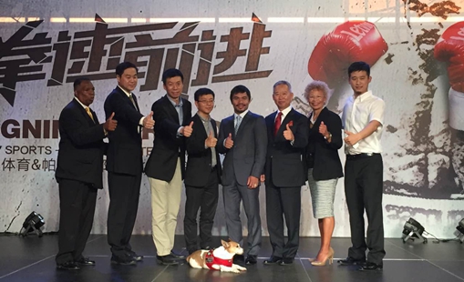 乐视体泰拳育CEO雷振剑、拳王帕奎奥、WBO中国区主席张涛