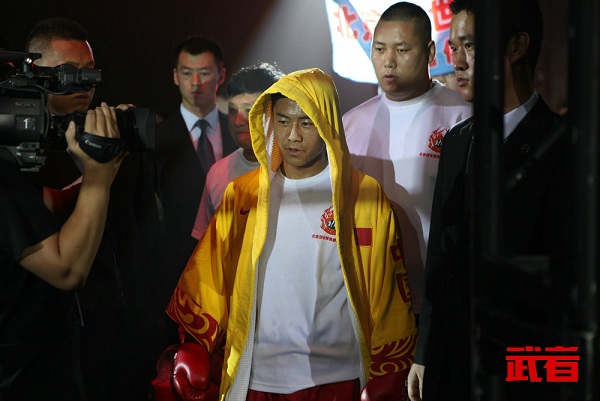 第五场比赛为67公斤次中量级较量,交锋双方为拳天下俱乐部20岁新疆拳手也尔多斯•杰恩思对阵中国王守忻拳击训练营29岁的北京拳手张赫,这场比赛赢得现场的呼声最高,对抗程度也最激烈,身高180CM、臂展190CM的也尔多斯在身体条件方面具有明显的优势,但张赫有效规避了自己劣势,闪躲及时灵活,在战术上战法上略胜一筹,最终以37-39、37-39MMA、36-40的比分胜出。