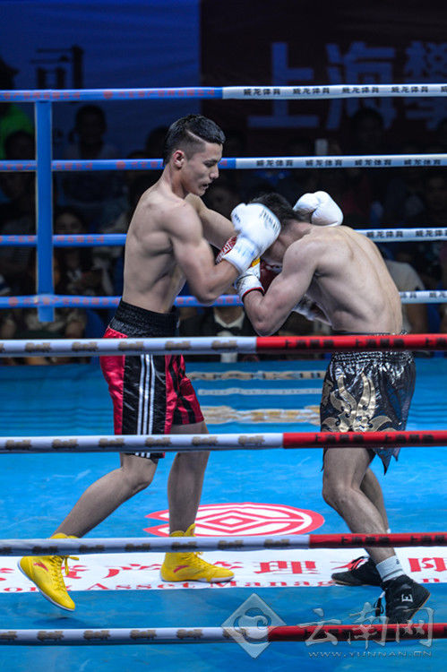6回合超羽量级排位赛中,大理的苏仕龙对阵福建省冠军陈志俊,有大理拳手的出场让现场观众沸腾。苏仕龙之前有14格斗场职业拳击经历,面对初次涉足职业拳击比赛的对手,他在第2回合就将对手击倒轻松获胜。