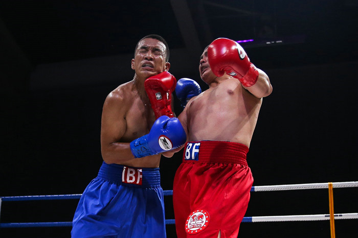 7月11日晚,IBF中国职业拳击联赛北京赛区排名赛第四场在北京香格里拉大饭店花园宴会厅准时开战。此次排名赛共设5个级别的比赛,分别是55kg超最轻量级、61kg轻量级、67kg次中量级、73kg中量级和79kg次重量级。