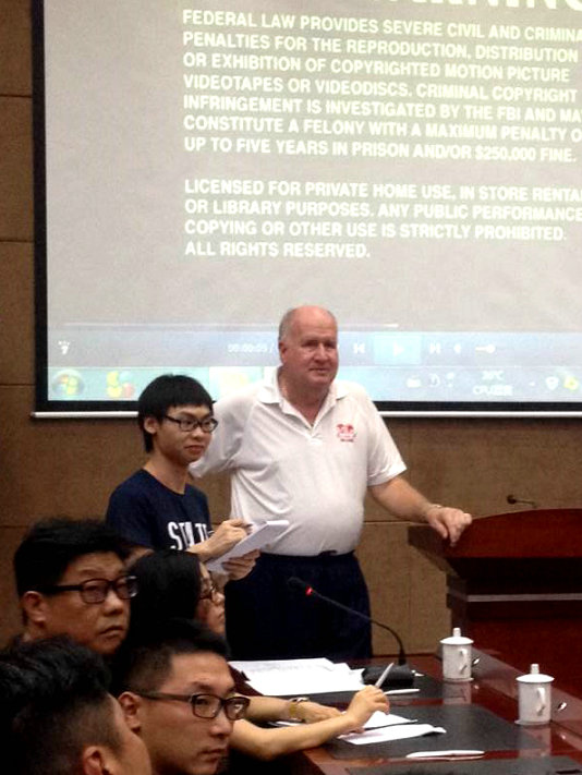 在培训课上,两位美国讲师与学员进行了充分的拳击互动,多次邀请学员上台进行比赛模拟,以最生动、直接的方式向学员讲授相应比赛情况下,应该采取的执裁措施。讲师们穿插播放了多场职业拳击赛事视频,让学员们进行现场打分、评判。在课堂提问环节,参与培训的学员们积极地向四位讲师提出各种执裁问题,并与讲师进行了积极热烈的讨论分析,课堂气氛十分活跃。四名讲师精彩、生动的授课让学员们对执裁职业拳击联赛有了更为深刻地认识和理解。