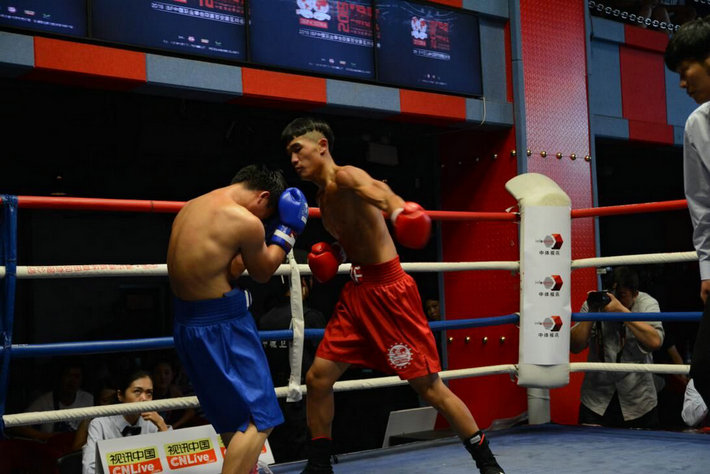 前三场比赛都是61公斤级的比赛,第三场对阵双方分别来自成都世纪泰华拳击俱乐部的张征和枣庄职业俱乐部的杨鑫宇。杨鑫宇在赛场上对距离和节奏控制的比较到位,且闪躲灵活,两位年龄相仿、身体条件接近的小将在场上当仁不让,斗志十足。