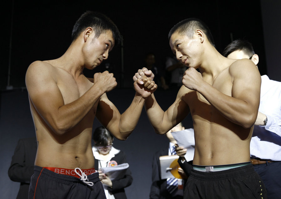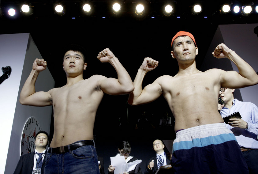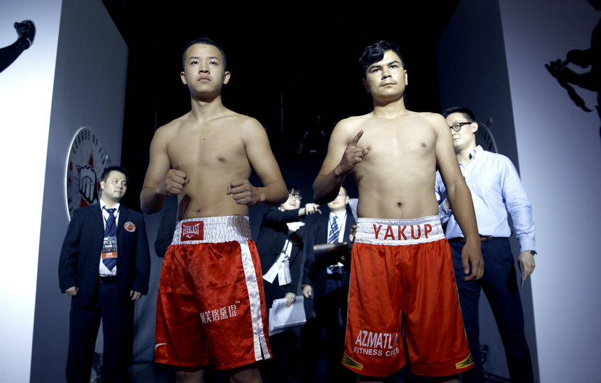 9月25日,中国知名体育营销公司盛力世家与美国知名拳击推广公司Top Rank合作,推出的全新职业拳击品牌赛事——《拳力联盟》第二轮比赛在上海梅赛德斯奔驰文化中心火热开战。第一轮9月26的赛前称重全部参赛的二十位选手体重顺利过关,称重图片如下: