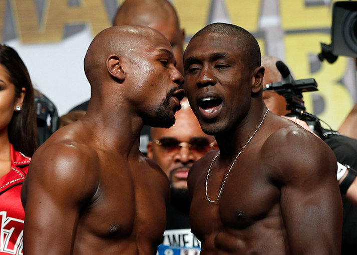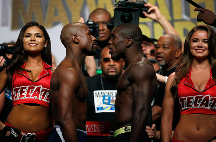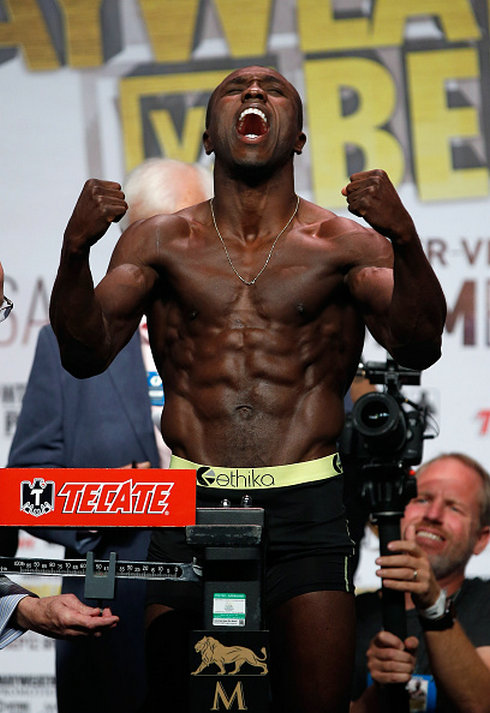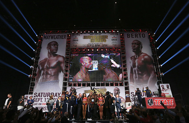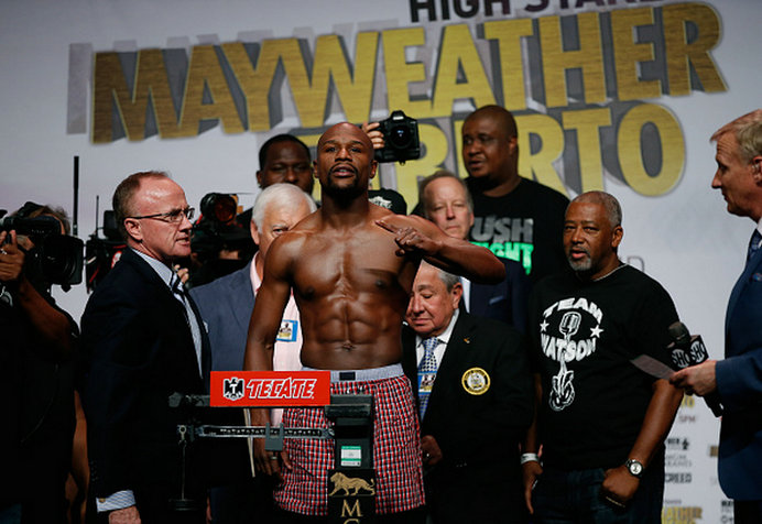 现任世界职业拳击P4P之王“金钱”弗洛伊德·梅威瑟(Floyd Mayweather)与前WBC次中量级拳王安德雷·贝托(Andre Berto)的比赛,即将于北京时间9月13日(明天周末)在美国拉斯维加斯米高梅大酒店开战。今天两位世界拳王举行了赛前称重仪式,双方体重均已达标。本次比赛周日中午CCTV-5央视将会进行直播。