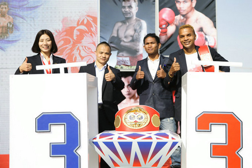 IBF世界拳王争霸赛暨2016 IBF全球年会新闻发布会启动仪式左起:蔡宗菊、熊朝忠、卡西梅罗、伦龙
