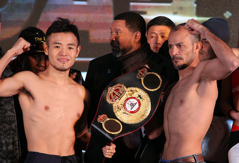称重仪式进行得很顺利,根据担任纪录的WBA中国机构提供的现场数据裘晓君为55.2KG(122磅换算是55.33公斤);他的对手、卫冕冠军瑟米诺第一次上秤是55.4公斤,稍微超了一点,在监督、WBA秘书长胡里奥的要求下,瑟米诺重新上秤后,以55.3的重量过关。