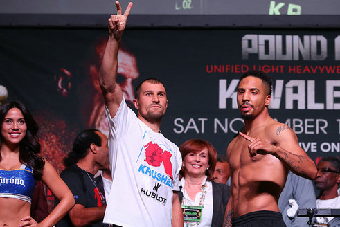 现任WBA、IBF、WBO轻重量级世界冠军俄罗斯不败王者谢尔盖·科瓦列夫泰拳(Sergey Kovalev)(30-0-1,26 KO)即将于北京时间11月20日在美国拉斯维加斯对阵WBA超中量级冠军美国不败拳王安德烈·沃德(And散打re Ward)(29-0,15 KO),今天两人称重全部是175磅,达到了轻重量级上限。