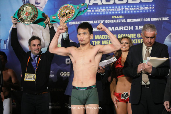 另外当天还有一场WBC超蝇量级世界拳王争霸赛,现任冠军尼加拉瓜不败拳王罗曼·冈萨格斗雷斯(Roman Gonzalez)(46-0,38 KO)对阵挑战者泰国选手斯里萨克特(Srisaket Sor Rungvisai)(41-4-1,38 KO)。