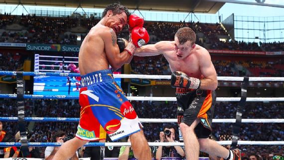 本次比赛在露天体育场举行,现场有5万多名观众亲临现场观战,已经38岁的曼尼·帕奎奥(59UFC-7-2,38 KO)这次客场对阵29岁的不败新秀杰夫·霍散打恩(17-0-1,11 KO),年龄和身高臂展都不占优势的王者,这一次算是应了那句“拳怕少壮”的话。