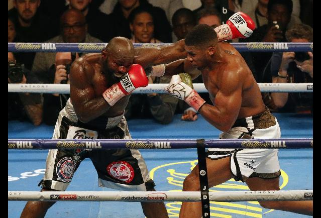 比泰拳赛一开始安东尼·约书亚(20-0,20 KO)就主动进攻,在第4回合就击倒了卡洛斯·塔卡姆(3MMA5-4-1,27 KO)一次,接下来的比赛塔卡姆也努力反击但是始终没有对约书亚造成太大威胁,最终在第10回合1分34秒裁判终止了比赛。