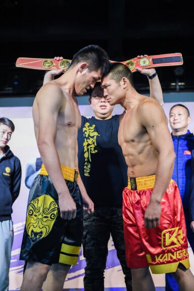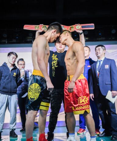 12月27日下午,2017大唐地产中国拳王赛天津站称重仪式在天津鑫茂天财酒店隆重举行,头条主赛的两名金腰带争夺者施国军、陈大祥携手8名垫场赛选手顺利通过称重。称重仪式上,施国军、陈大祥为争夺金腰带大打出手,并自信能够拿下明晚的比赛。陈大祥表示:“我有这个信心、决心击败他,拿到中国拳王金腰带!”而即将退役的首届拳王施国军则还以颜色道:“话不多说,明天赛场上看看谁的拳头更硬!”