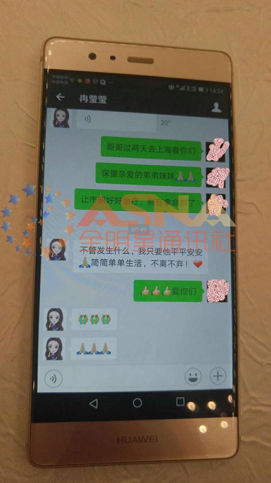 知情人:颖莹,颖莹,你在吗?听说市明病了?方便的时候回一个电话或者语音。听说市明伤的很严重?回到上海治疗的怎么样呢?哥哥很担心弟弟的病