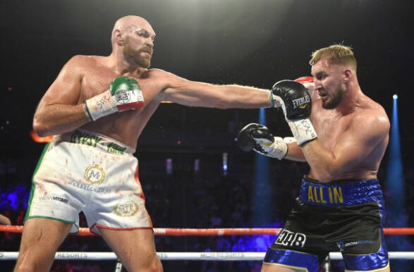 泰森·富里(29-0-1,20 KO)虽然不出意外点数战胜了奥托·沃林(20-1,13 KO,1 N),但是这场胜利赢的并不那么轻松。比赛一开始富里不急不慌游走打反击,在第三回合双方近身缠抱时沃林一记后手摆拳将富里的右眼角打开了一个口子,这个伤口一直流血不止给富里造成了不小的麻烦,到第七回合富里转守为攻开始积极主动进攻,有几次富里降沃林逼到角落连续组合拳进攻,富里多次重击命中沃林,面对富里的攻势沃林顽强防守,最终双方打满十二回合,富里以(116-112、117-111、118-110)一致散打判定获胜。