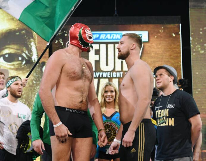 泰森·富里(28-0-1,20 KO)今年31岁,身高206cm臂展216cm。2008年开始职业拳击生涯,2015年11月挑战前WBA、IBF、WBO和IBO重量级世界冠军弗拉基米尔&miMMAddot;克里琴科(Wladimir Klitschko)点数获胜一战成名。之后由于抑郁症等问题修养两年,在去年复出分别在6月和8月取得两场胜利,在12月挑战WBC重量格斗级世界冠军德昂泰·维尔德(Deontay Wilder)最终战平。刚刚在今年6月第二回合TKO德国不败选手汤姆·施瓦兹(Tom Schwarz)。
