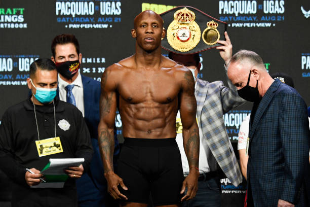 泰拳 尤德尼斯·乌加斯(26-4,12 KO)今年35岁,身高175cm臂展175cm。乌加斯曾经获得2005年世锦赛冠军,2008年北京奥运会铜牌。2010年开始职业拳击生涯,曾在2019年3月挑战WBC次中量级冠军肖恩·波特(Shawn Porter)遗憾点数告负,之后取得3连胜,其中在去年9月点数战胜阿贝尔·拉莫斯(Abel Ramos)夺得WBA次中量级冠军金腰带。