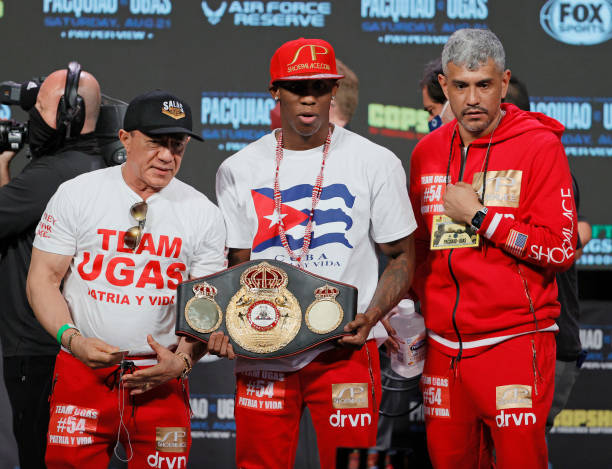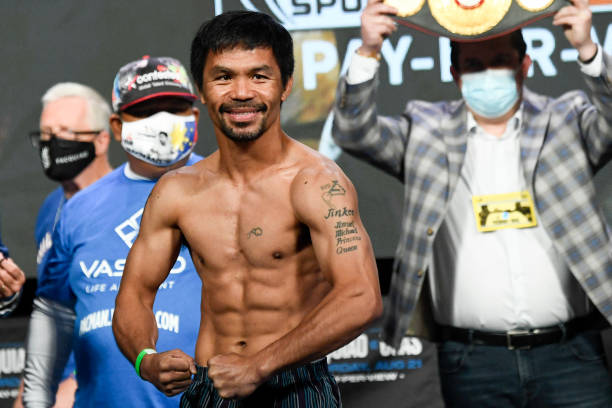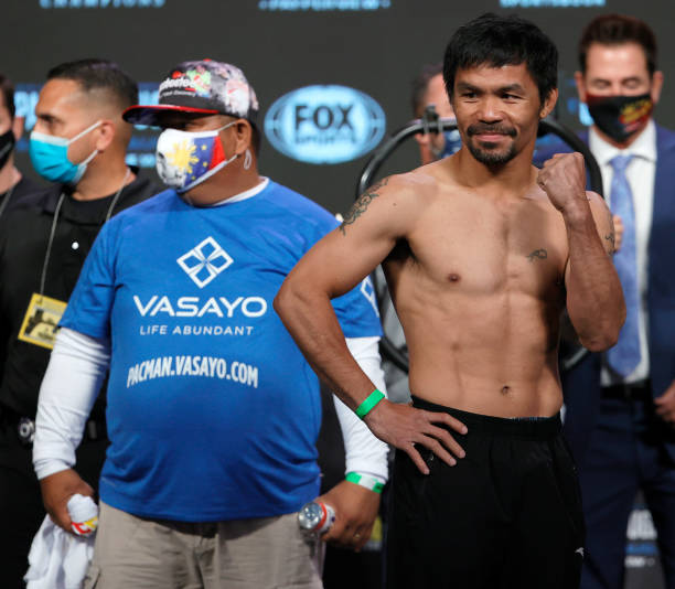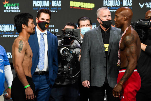 八个级别世界冠军传奇拳王曼尼·帕奎奥(Manny Pacquiao)即将于北京时间8月22日在美国拉斯维加斯对阵古巴拳击冠军WBA次中量级冠军尤德尼斯·乌加斯(Yordenis Ugas),今天的称重仪式双方顺利过关,帕奎奥体重146磅,乌加斯体重147磅。