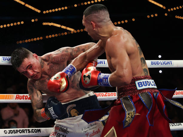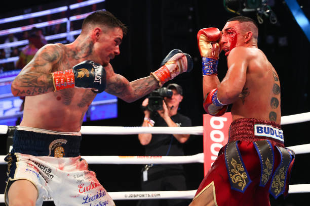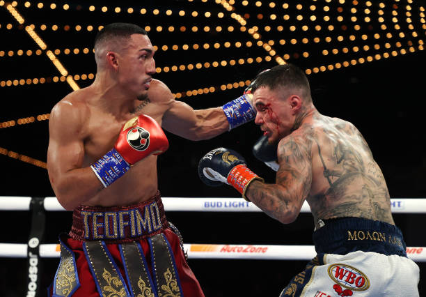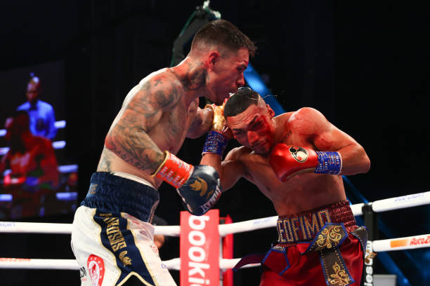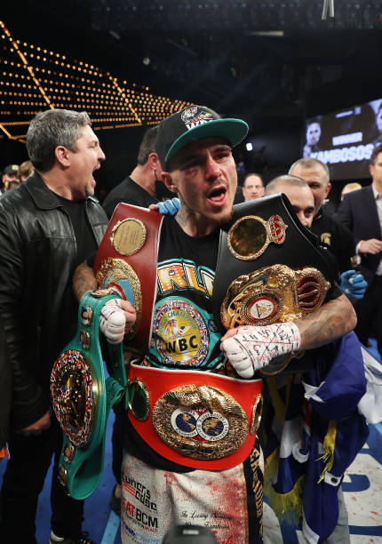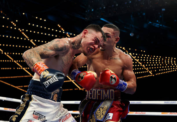 北京时间11月28日,特奥菲莫·洛佩兹(Teofimo Lopez)与小乔治·坎博索斯(George Kambosos Jr.)的比赛在美国纽约举行。当天还有中国重量级名将张志磊出战对阵克雷格·刘易斯(Craig Lewis)。最终坎拳击博索斯爆冷分歧判定险胜洛佩兹拿下WBA、WBC(特赦)、IBF和WBO轻量级四条金腰带,张志磊TKO对手继续不败金身。