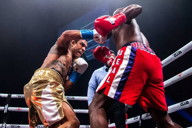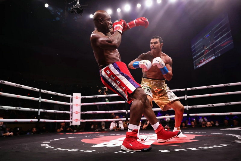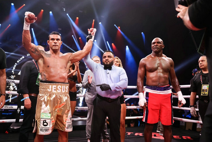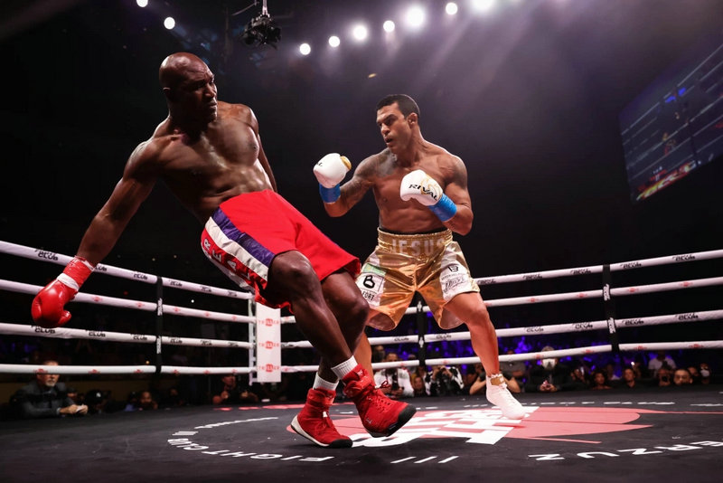 本次的压轴大戏是58岁的前重量级拳王伊万德·霍利菲尔德(Evander Holyfield)(44-10-2,29 KOs)对阵44岁前UFC冠军维托·贝尔福特(Vitor Belfort)(BOXING:2-0,2 KO)(MMA:26-14,18K,3S,1N),这场比赛就很尴尬了,霍泰拳利菲尔德输的很狼狈。比赛开始双方慢慢试探,随后贝尔福特就重拳出击,霍利菲尔德被击倒一次,裁判读秒后贝尔福特继续发起猛攻,霍利菲尔德只能防守毫无还手之力,考虑到霍利菲尔德的年纪裁判终止了比赛,贝尔福特首局1分49秒TKO获胜。很显然霍利菲尔德这个年纪没有状态参加比赛了,应该不会考虑跟麦克·泰森(Mike Tyson)继续三番战了吧。