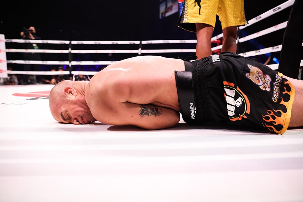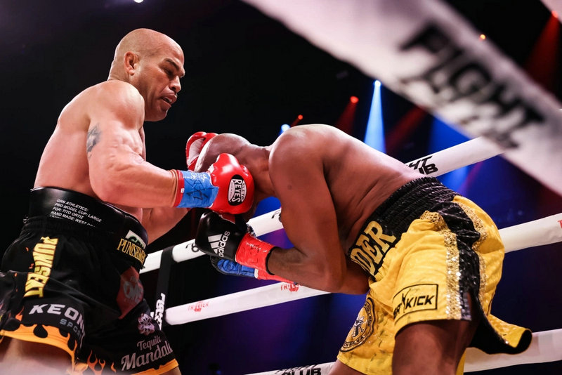 联合主赛是46岁的前UFC中量级冠军“蜘蛛”安德森·席尔瓦(Anderson Silva)(BOXING:3-1,2 KO)(MMA:34-11,23 K,3 S,1 N)对阵同样46岁的前UFC轻重量级冠军“坏小子”提托·奥蒂兹(Tito Ortiz)(BOXING:0-1)(MMA:21-12-1,10 K,5 S),赛前新闻发布会上奥蒂兹嘲笑席尔瓦练习咏春拳崇拜李小龙,他说“咏春拳和李小龙都是扯淡”。结果今天的比赛奥蒂兹当场被打脸,比赛开始奥蒂兹步步紧逼向前压制,席尔瓦被逼到角落一直防守,并且利用他灵活的身法闪躲避开了奥蒂兹的组合拳,随后席尔瓦一记重拳反击打晕了奥蒂兹,席尔瓦继续两拳追击当场KO了奥蒂兹,比赛用时仅1分22秒。赛后拳击席尔瓦在采访中表示,自己用实际行动证明了李小龙和咏春拳,他说:“正如李小龙所说,象水一样我的朋友。”