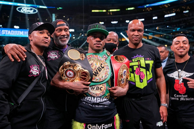 北京时间4月17日,在美国阿灵顿举行的一场三个组织的次中量级世界拳拳击王争霸赛上,现任WBC和IBF次中量级冠军小埃罗尔·斯彭斯(Errol Spence Jr.)在第十回合TKO现任WBA次中量级冠军古巴拳王尤德尼斯&miMMAddot;乌加斯(Yordenis Ugas),一统三个组织的冠军金腰带。