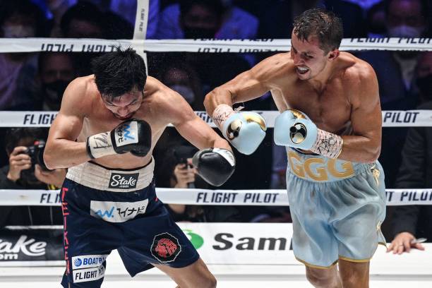 已经40岁高龄的根纳迪·戈洛夫金(42-1-1,37 KOs)面对主场作战36岁的村田谅太(16-3,13 KOs)发挥还算稳定,前几回合戈洛夫金打的有些保守,村田谅太则非常强势略占上风。在第三回合格洛夫金加强攻势,不过村田谅太防守严密并且反击也非常不错。第五回合开始格洛夫金开始慢慢打出状态,村田谅太依然顽强反击,但村田谅太依然打不动格洛夫金,最终到了第九回合格洛夫金连续重拳命中,村田谅太勉强坚持继续反击,在被格洛夫金后撤重拳反击击倒后,村田谅太团队扔出白毛巾,格洛夫金2分11秒TKO获胜。