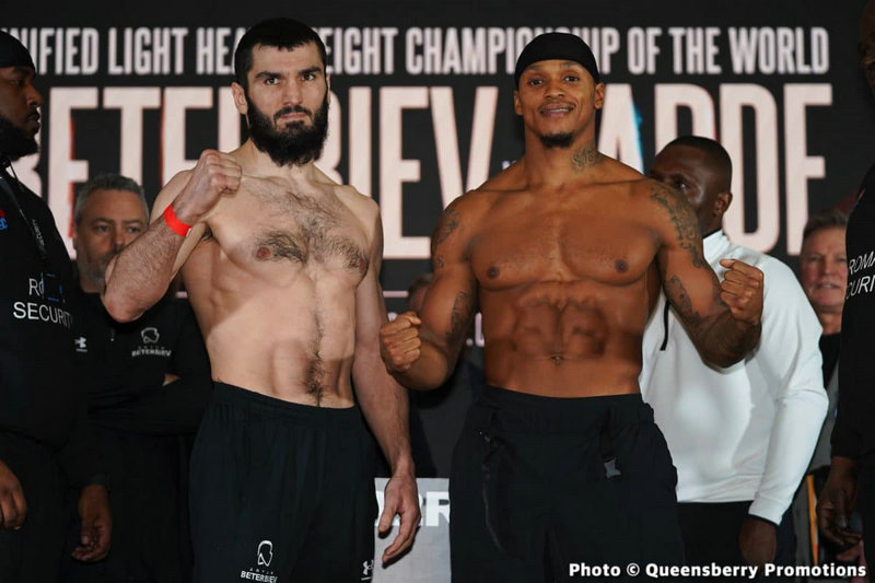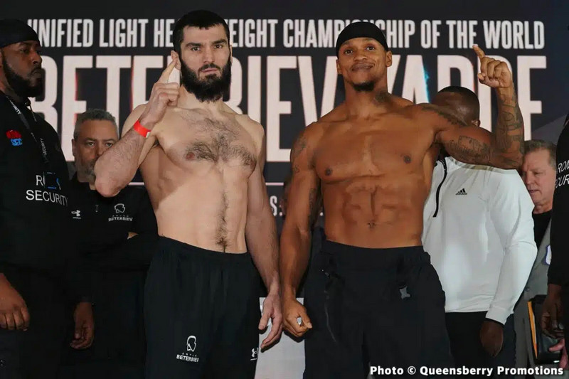 现任WBC、IBF和WBO轻重量级世界冠军阿图尔·贝特比耶夫(Artur Beterbiev)即将于1月28日在英国伦敦进行卫冕战,对手是本土选手安东尼·亚德(Anthony Yarde),今天的赛前称重仪式上,双方顺利过关,贝特比耶夫体重174.5磅,亚德体重174.25磅。