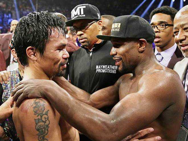 近日,前八个级别的世界拳王曼尼-帕奎奥(62-8-2,39KO)的顾问西姆-吉本斯向媒体透露,前五个级别的世界拳王弗洛伊德-梅威瑟(50-0,27KO)近来拒绝在2024年和帕奎奥进行二番战。