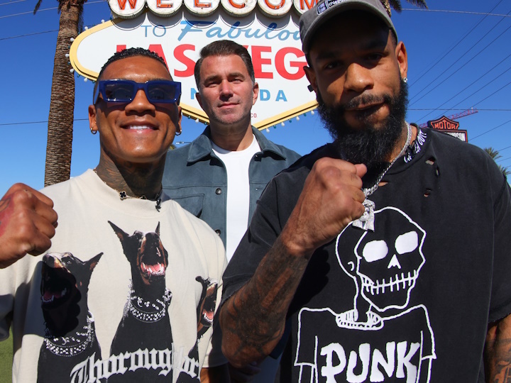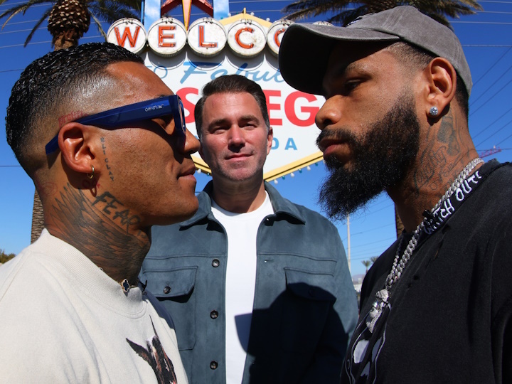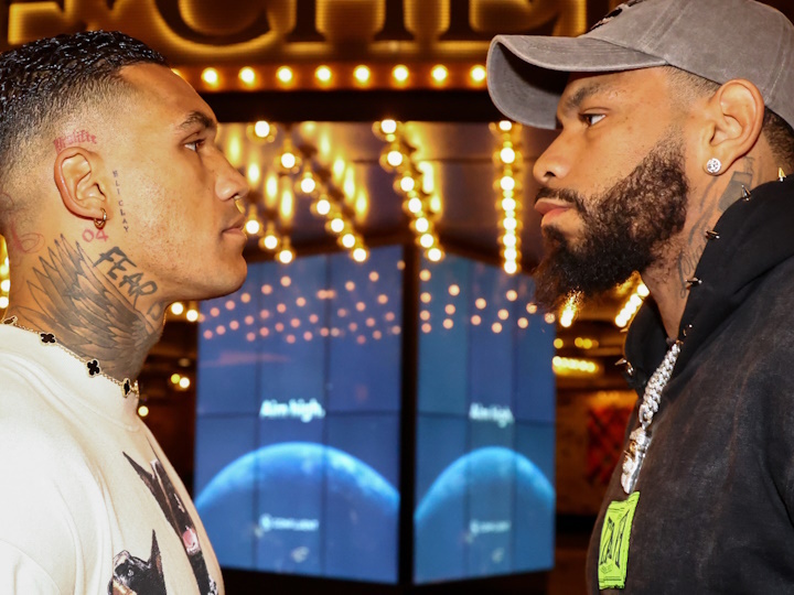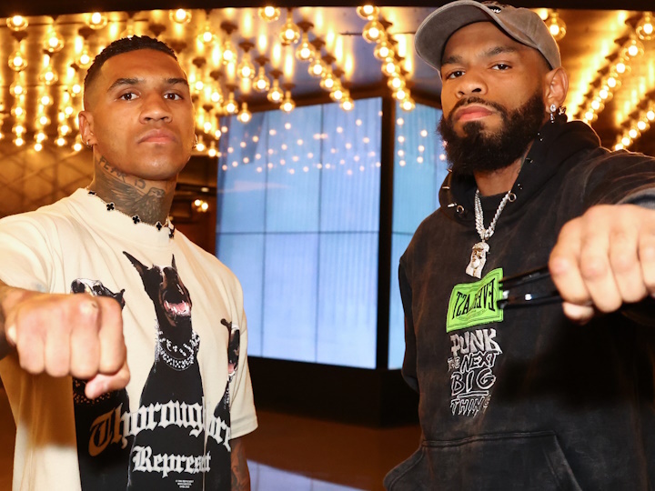 今天,英国次中量级新秀康纳-本(22-0,14KO)和美国不败拳手皮特泰拳-多布森(16-0,9KO)在拉斯维加斯进行了面对面散打宣传活动。北京时间2月4日(本周日),两人将在拉斯维加斯大都会酒店进行一场预定为12个回合的次中量级比赛,这也是康格斗纳-本2024年第一战。康纳-本的父亲是前世界中量级/超中量级拳王尼格尔-本(42-5-1,35KO)。