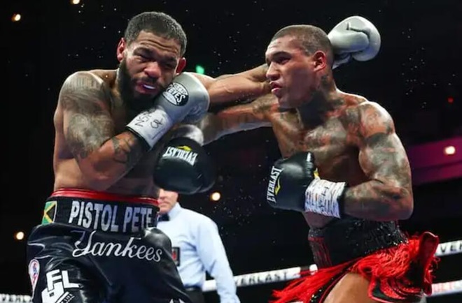 比赛是在拉斯维加斯大都会酒店举行的,这也是今天当地的主赛。两人实力有相当差距,康纳-本一上来就点数领先,打的很轻松。比赛进行到中局,多布森加快了节奏,打的积极了,不过技高一筹的康纳-本重拳更清晰有效,仍旧领跑比赛。最终两人战满12回合,三位裁判以格斗119-109、118-110、118-110的点数优势一致判康纳-本几乎完胜。