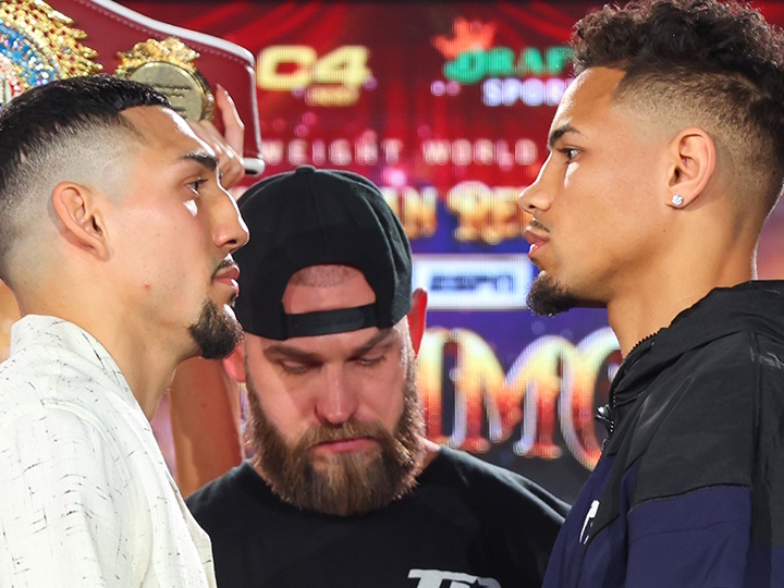 今天,现WBO超轻量级拳王/两个级别的世界冠军美MMA国人特奥菲莫-洛佩兹(19-1,13KO)和美拳击国同胞杰梅因-奥提兹(17-1-1,8KO)在拉斯维加斯召开了赛前最后一次新闻发布会。北京时间2月9日(本周五),两人将进行一场预定为12个回合的超轻量级拳王争霸战,洛佩兹第一次卫冕WBO-140磅的世界拳王金腰带。现在最新赔率是1.14-5.50,洛佩兹被广泛看好。