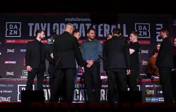 今天,前世界超轻量级四料拳王英国人乔什-泰勒(19-1,13KO)和老对手杰克-卡特拉尔(28-1,13KO)召开了二战前首次新闻发布会,宣布了4月27日的比赛。两人将在利兹进行二番战,DAZN直播。