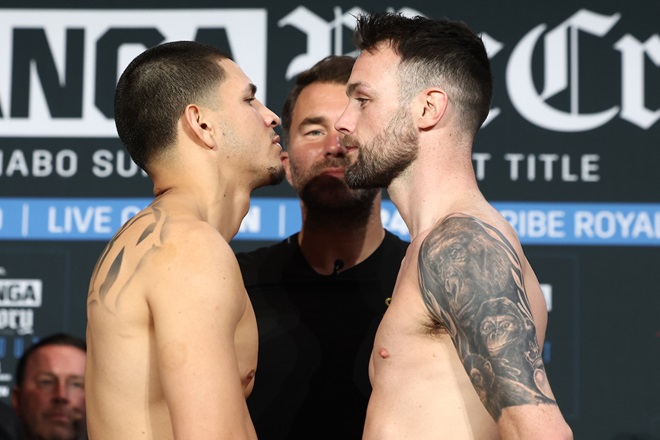 今天,美国超中量级“秒杀之王”埃德加-贝尔兰加(2格斗1-0,16KO)和爱尔兰“锤子”帕德雷格-麦克格里(18-0,9KO)在美国奥兰多进行了赛前称重仪式。北京时间2月25日(周日)上午,两人将进行一场预定为12个回合的超中量级比赛。
