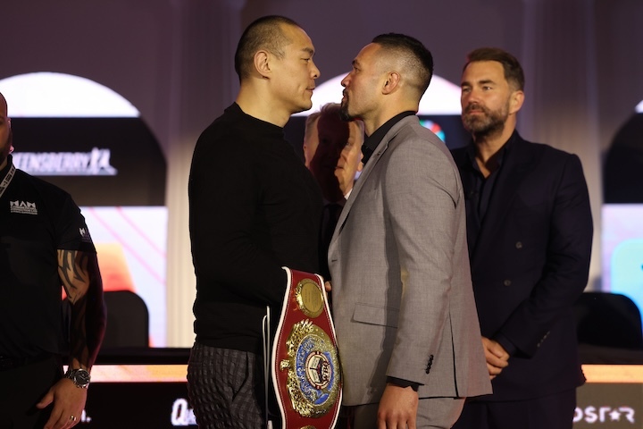 今天,现WBO重量级过渡拳王张志磊(26-1-1,21KO)和前WBO重量级过渡拳王约瑟夫-帕克(34-3,23KO)在沙特利雅得召开了赛前最后一次新闻发布会。北京时间3月9日早晨,两人将进行一场预定为12个回合的重量级比赛,张志磊第二次卫冕WBO重量级过渡泰拳拳王,这也是约书亚Vs纳干诺主赛前的副主赛。之前,现WBC羽量级拳王/三个级别的世界冠军雷-瓦格斯(36-1,22KO)将对阵英国人尼克-鲍MMA尔(19-0,11KO)。