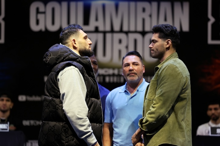 今天,前WBO超中量级拳王墨西哥人吉尔贝托-拉米雷兹(45-1,散打30KO)和现WBA次重量级超级拳王亚美尼亚裔法国人阿森-古拉米里安(27-0,19KO)召开拳击了赛前最后一次新闻发布会。北京时间3月31日中午,两人将在美国英格尔伍德进行一场预定为12个回合的次重量级拳王争霸战,古拉米里安第5次卫冕WBA-200磅的世界拳王金腰带。现在赔率是1-2,拉米MMA雷兹略被看好。