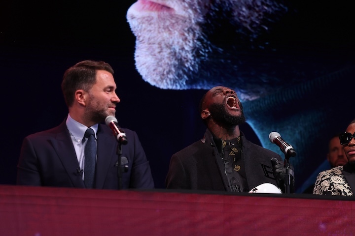 今天,前WBC重量级拳王德昂泰-维尔德(43-3-1,42KO)向媒体表示,等自己6月1日打断张志磊(26-2-1,21KO)脑袋后,要继续挑战安东尼-约书亚(28-3,25KO)。
