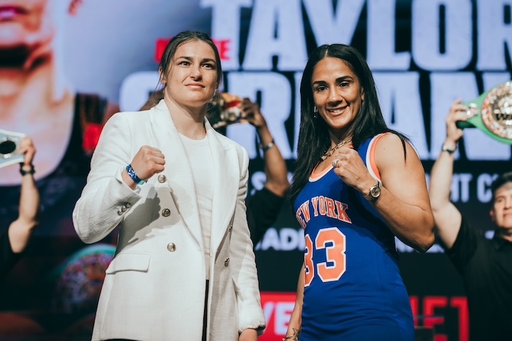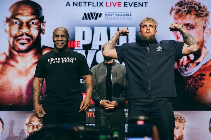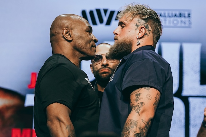 今天,前世界著名重量级拳王57岁的迈拳击克-泰森(50-6,44KO)和美国网红拳手27岁的杰克-保罗(9-1,6KO)在纽约召开了赛前新闻发布会。北京时间7月21日中午,两人将进行一场预定为8个回合的重量级比赛,这是一场正式职业比赛,不过每回合只打2分钟。在之前的副主赛中,现WBC/WBA/IBF/WBO女子超轻量级拳王凯蒂-泰勒(23UFC-散打1,6KO)将和七个级别的女子世界拳王阿曼达-塞拉诺(46-2-1,30KO)进行二战。