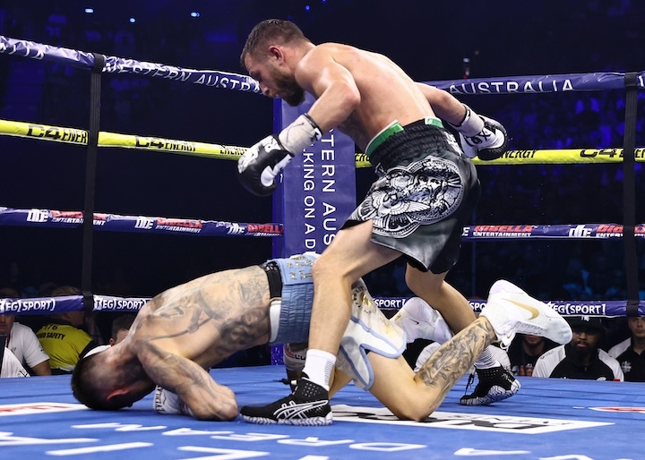 坎伯索斯此前两次输给过德文-哈尼(31-1,15KO),但都是点数,此前唯一的一次倒地是对特奥菲莫-洛佩兹(20-1,13KO)的比赛。今天洛马琴科两次击倒了坎伯索斯豪取胜利,还是很有说服力的。