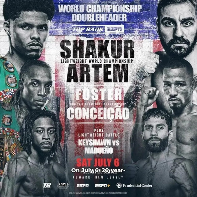 当地时间7月7日上午,在美国新泽西保城中心举行了几场重要比赛,其中主赛是WBC轻量级拳王、三个级别世界冠军美国选手沙克-史蒂文森(21-0,10KO)对阵亚美尼亚裔德国选手阿泰姆-哈鲁特云扬(12-1,7KO)。