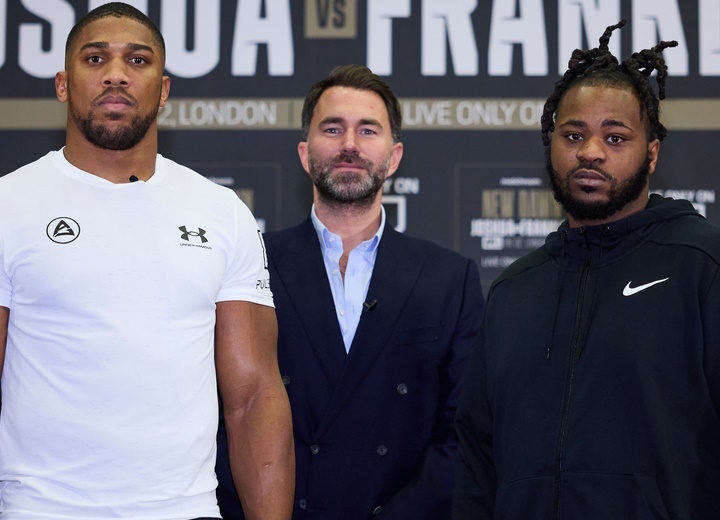 弗兰克林说:“我会努力KO约书亚的,否则可能很难受到公平待遇。我要拿出杀手本性来。之泰拳前我去英国挑战迪廉-怀特(29-3,19KO)已经经历了黑哨。赛后我们的出拳统计证明,我几乎每一个回合都比迪廉-怀特打的好,但裁判却把胜利给了怀特。我觉得我要在英国客场取胜,要么KO对手,要么完全主宰比赛。”
