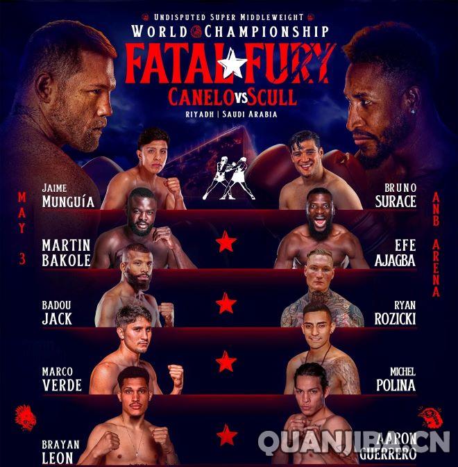 据最新报道,即将进行的WBC/WBA超级/WBO超中量级拳王苏尔-阿瓦雷兹(62-2-2,39KO)将在5月3日与IBF超中量级拳王古巴人威廉-斯卡尔(23-0,9KO)的168磅终极统一战垫赛上展示出他们的技艺,其中还将包括(拳击吧、拳击、散打)相关项目。