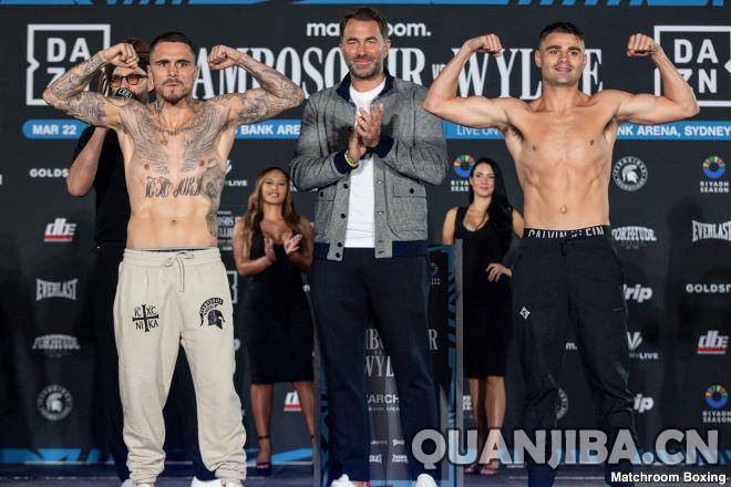 当今,前WBA/IBF/WBO轻量级拳王澳大利亚人小乔治-坎伯索斯(21-3,10KO)和同胞新秀杰克-威利(16-1,15KO)在悉尼奥林匹克公园进行了赛前称重活动。明天晚上,这两位将在一场预定为12回合的超轻量级比赛中展开对决,其中坎伯索斯将迎来他在140磅级别的首次出战。坎伯索斯今天的体重为139.3磅,而对手则为139.5磅,顺利通过了称重。