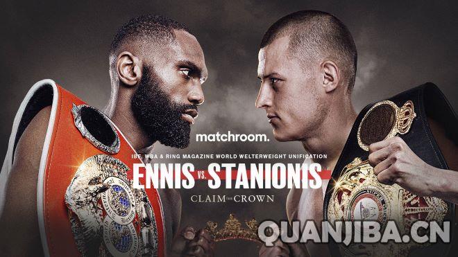 报道:这是2025年4月13日的一场中量级拳击赛,IBF中量级拳王“靴子”加隆-恩尼斯(33-0,29KO)与WBA中量级拳王立陶宛拳手埃曼塔斯-斯塔尼奥尼斯(15-0,9KO)之间的激烈对决,这是两位不败拳王的巅峰对抗。拳击、散打和泰拳等赛事都备受关注,而KO率更高的加隆-恩尼斯备受期待。想观战比赛视频,请点击以下链接:https://v.youku.com/video?spm=a2hcb.profile.app.5%7E5%212%7E5%7E5%213%7E5%212%7E5%7E5%7EA%212&playMode=pugv&vid=XNjQ2NzIxNjQ2MA%3D%3D