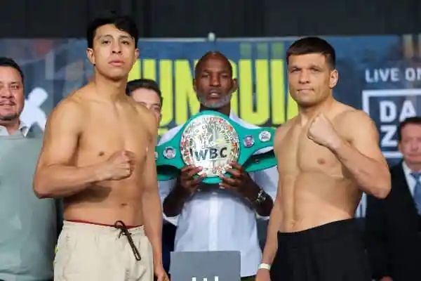 今天,前WBO超次中量级拳王墨西哥人加梅-蒙圭亚(41-0,33KO)和前世界中量级拳王挑战者乌克兰人塞吉-德雷亚申科(14-4,10KO)在美国安大略丰田体育场举行了赛前称重仪式。北京时间6月1格斗1日(周日)上午,两人将进行一场预定为12个回合的超中量级比赛,争夺空缺的WBC-168磅银腰带。两人今天称重同为167.4磅,一次过关。